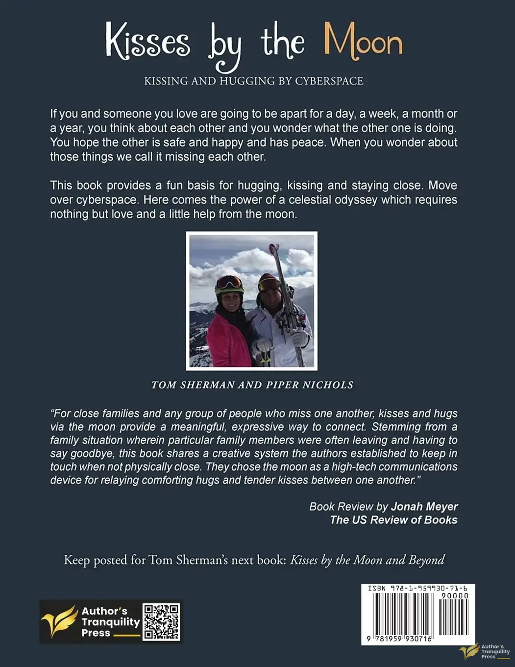 If you and someone you love are going to be apart for a day, a week, a month or a year, you think about each other and you wonder what the other one is doing. You hope the other is safe and happy and has peace. When you wonder about those things we call it missing each other. This book provides a fun basis for hugging, kissing and staying close. Move over cyberspace. Here comes the power of a celestial odyssey which requires nothing but love and a little help from the moon.