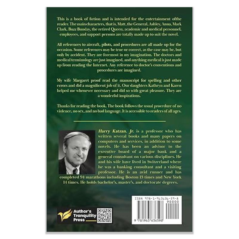 This is a book of fiction and is intended for the entertainment of the reader. The main characters, that is, Matt, the General, Ashley, Anna, Mark, Clark, Buzz Bunday, the retired Queen, academic and medical personnel, employees, and support persons are totally made up to suit the novel.