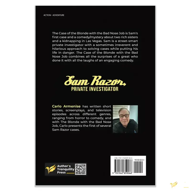 The Case of the Blonde with the Bad Nose Job is Sam's first case and a comedy/mystery about two rich sisters and a kidnapping in Las Vegas. Sam is a street-smart private investigator with a sometimes irreverent and hilarious approach to solving cases while putting his life in danger. The Case of the Blonde with the Bad Nose Job combines all the surprises of a great who done it with all the laughs of an engaging comedy.