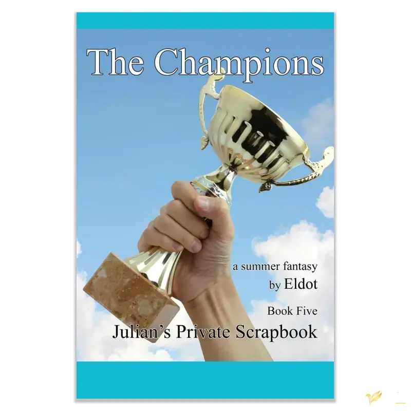 The Champions is the 5th in the Scrapbook series. It explores the world from the eyes of a young gay boy. His needs and desires are looked at honestly, with a sense of humor, and without the baggage of present-day prejudice. It's important to actively combat the bullying of gay teens. Bullies get away with it because society is ignorant about these boys. By enlightening people, this series deals with that. Let there be no more suicides, no more bashing. Twelfth Day Eleven days ago, Mark Schaeffer brought his scout troop to Camp Walker for its annual two-week summer camp. This is his fifth camp as a scoutmaster and the most momentous for him personally and professionally. His decision on the first day to house Julian in the cabin has proven to be a success for Julian, and unexpectedly, for himself. His intent was to shield Julian from extra-curricular encounters. Julian has had an unexpected impact; his own life goals are being examined anew. The last three days of camp are packed with activity. Merit badges have to be awarded, competitions held, and goodbyes made. There is unfinished personal business to complete, and there are campsites to close. A few new developments manage to find their way into the story. Julian makes two bulls-eyes in Archery. Afterward, he asks Leonard to critique his drawing of Geoff being treated at the first aid station. Leonard is amazed at the quality of the work and at the impact of seeing Geoff's image. Julian's fascination with the curmudgeonly camp Ranger continues. He and Sarge develop a special relationship. We get to know more about this man and how Julian has managed to change his outlook on life. Tom provides a spectacular finale for Freddy's Shooting Gallery. Julian does a large portrait of Mark. Mark is overwhelmed by its character and quality. Geoff arrives at the cabin just before midnight. He re-injures himself on the way. Thirteenth Day: It takes Mark over two hours to deliver Geoff back to Hawk camp. Temptations along the way are overcome. The last full day of camp is packed with activity. Danny returns to his regular duties. Doug revises his scheme to entrap Julian a second time and snags Danny instead. Danny and Tony skip out on Tom's time trials. Leonard sees the opportunity and is delighted to serve as a matchmaker. He believes that conservative Danny needs Tony to be anti-establishment to bring his life into balance. Leonard is stunned by the portrait of Uncle Max, and its ability to depict the old man's innate kindness. Julian presents Leonard with his portrait. Its uncanny depiction of Leonard's innate sensuality is a shock; Leonard is flattered, delighted, and frightened. He hides it under his table until he can get it safely away. The last afternoon free-swimming period is the scene for several key developments. Geoff finds a way to guarantee his rendezvous with Leonard. Stan is schooled by Tom about the realities of romantic involvement. Tony pays an after-hours visit to Danny. Fourteenth Day: Sarge searches for a special item to give to Julian. After the awards are made, Julian supervises the return of the featherbed mattresses. Uncle Max asks Julian to stay behind; he presents a gift, a memento from his World War II days. Geoff meets Leonard in the storeroom; Julian's portrait of Leonard serves a special purpose. On the bus trip home, Mark gives personal thanks to Nick for mentoring Julian, and Tom has a brief talk with Robin about Jack. The parents are waiting to meet the bus. Julian reflects on how things stand. He renews his commitment to the long-range goal of winning Mark as a life partner. He is confident that he is up to the task. He realizes that he has to face his responsibilities as a son and that he needs to plan for his career. He will be entering high school in the fall.
